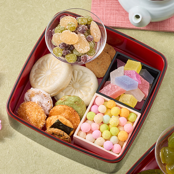 きらく箱に並べることで、普段のお茶時間も華やかに。