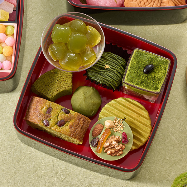 抹茶のケーキやクッキーは、和菓子とも洋菓子とも相性がよく、盛り合わせ次第で雰囲気が変わります。