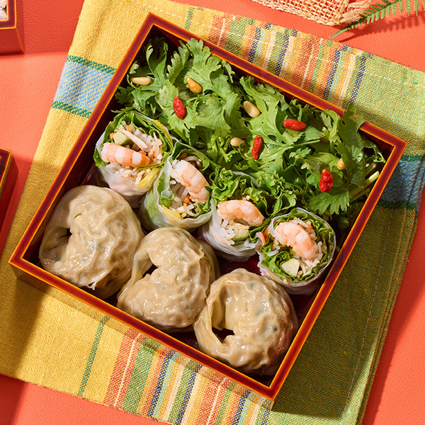 生春巻きやマントゥなど、国境を越えたメニューも、きらく箱なら美しくまとまります。