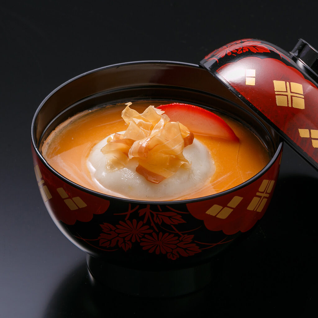 蓋を開ける楽しみや、開けた時に立ち上る湯気や香りもご馳走となる蓋付きのお椀。かの魯山人も好んだ日月の意匠は、古典の情趣とモダンでアートな遊び心が調和しています。