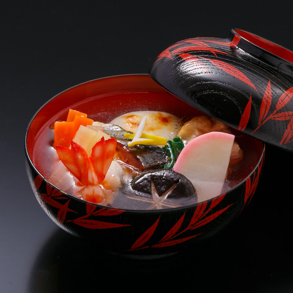 お雑煮は山海の幸が盛りだくさん。具は奇数で揃えます。