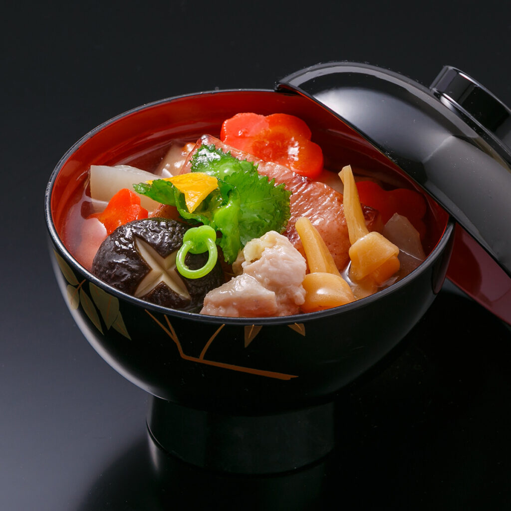 蓋を開ける楽しみや、開けた時に立ち上る湯気や香りもご馳走となる蓋付きのお椀。かの魯山人も好んだ日月の意匠は、古典の情趣とモダンでアートな遊び心が調和しています。